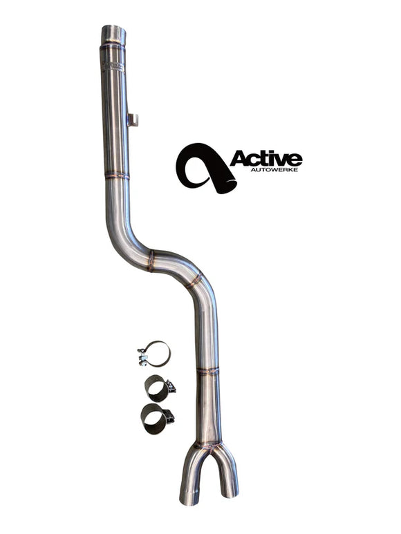 PLEASE NOTE - this exhaust is midpipe intended for those who only wish to replace their stock midpipe so there needs to be a cut - all connecting hardware is provided. If the midpipe is installed at the same time as our Active Rear Exhaust no cutting is required as the entire stock exhaust can be dropped and replaced with the Active midpipe and rear exhaust.