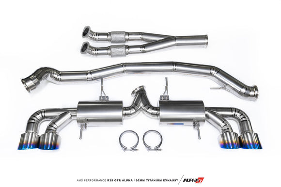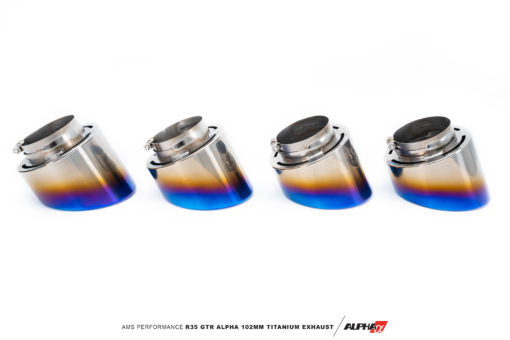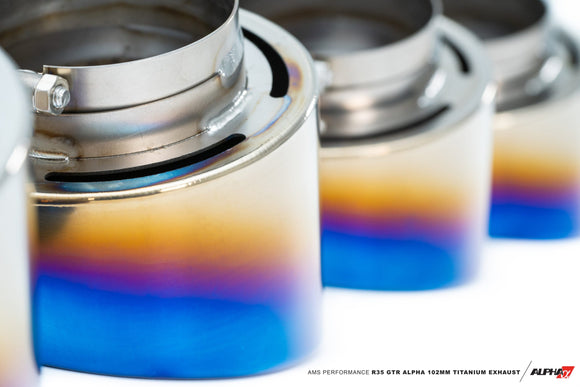 With the factory exhaust components weighing in at over 63 lbs it’s not hard to see how improvements can be made with a lightweight titanium exhaust. Weighing in at approximately 30lbs assembled, the Alpha 102mm Titanium Exhaust is less than half the weight of a factory exhaust. It’s even drastically lighter than the 57 lb partially titanium Nismo exhaust. The Alpha 102mm is fully titanium – the piping, mufflers, tips, and even the flanges are 100% titanium.