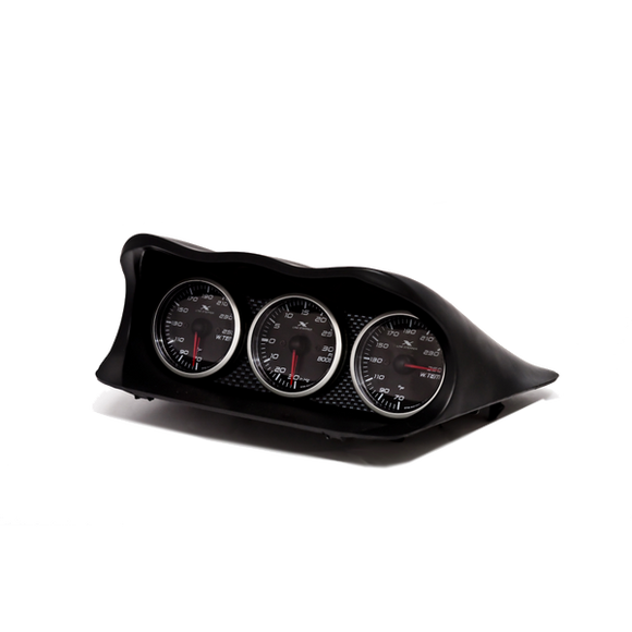 Triple gauge pod for a set of three 60mm gauges. Overlay design fitting perfectly over the center dash.