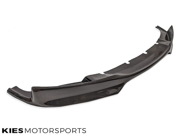 The Kies Motorsports VSX carbon fiber front lip is designed for the F30 BMW 3 series sedans equipped with the M-Sport package (also compatible with retrofitted m sport aftermarket front bumper conversions).