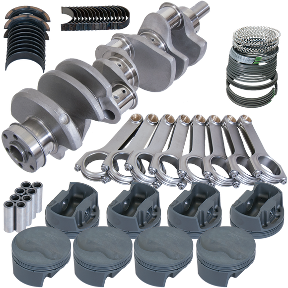 BALANCED 4.000" FORGED 4340 STEEL CRANK,6.250" H-BEAM RODS,7/16" ARP 8740 BOLTS,FORGED 4032 MAHLE -6.6CC FLAT TOP 4.030" PISTONS,PLASMA-MOLY FILE-FIT RINGS,KING XP ROD/MAIN BEARINGS.