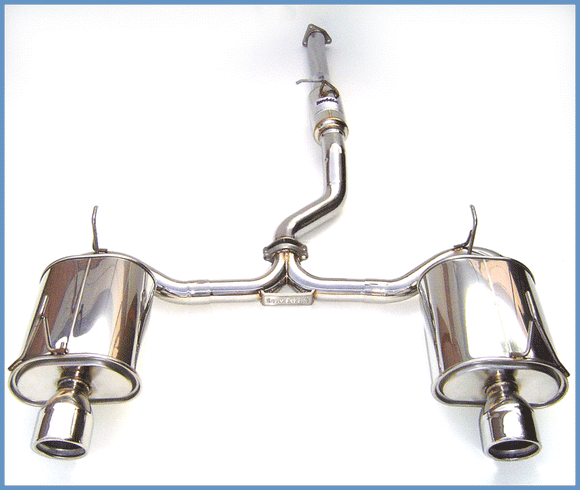Invidia's Q300 exhaust systems feature a flat bottom muffler. The flat bottom shaped muffler design results in improved high speed aerodynamic performance. The muffler inside contains continuous piping design and use of Advantex material that results in an excellent free-flow exhaust with optimized back pressure, giving greater horsepower, torque gains and a rich deep sporty sound. The use of SUS304 polished stainless steel piping, Mandrel bent to shape, state of the art CNC machine made flange, Robot TIG welding and double wall polished stainless steel or Titanium tips, provides outstanding durability and appearance.