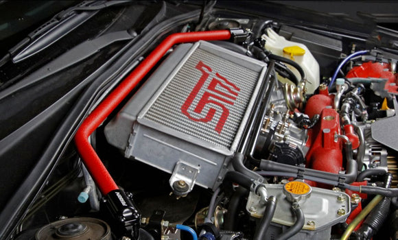Utilizing CNC-machined aluminum feet and mandrel-bent thin-wall 4130 Cro-moly tubing, the PERRIN Performance Strut Tower Brace is strong while remaining lightweight. The strut bar is powder-coated for protection against the elements, so the finish will look awesome for years to come. The feet are a black anodized and lasered with the PERRIN logo.