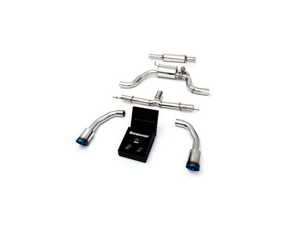 Enhance your MK8 GTI by adding the ARMYTRIX Valvetronic Stainless Steel Exhaust System. This system will increase power, reduce weight, and improve sound. This precision-made performance system delivers more power, especially in the low and mid rev range, the effect on the sound is significant, adding a deep resonant sporty sound, but at the same time neutralizes the annoying frequencies in the most critical rpm range. Complete the look with a set of four sporty chrome polished silver tailpipes. ARMYTRIX exhaust systems differ from other brand's exhaust systems with their unique "Throttle Pedal Sensor and Engine RPM Signal Auto Functions". Through this system ARMYTRIX offers car owners a better launch-start without losing backpressure by automatically closing the valves at low rpm. When your car is driving at high speeds, the valves will automatically open to increase air flow for better performance (hp & torque gained) and sound. Car owners can set their own timing for valves to automatically open and close by engine rpm and how deep they press the gas pedal. It's a new innovative system that brings your car to a different level. With the ARMYTRIX you are not getting just an exhaust system, you are getting a driving system unlike any you have experienced before. When car owners turn on the race mode (valves opened), the gas goes through the section of straight pipes. This is where you get the incredible race sound and performance gain. In full throttle and it' straight pipe all the way, which means you will be expecting the LOUDEST sound performance you've ever hear!